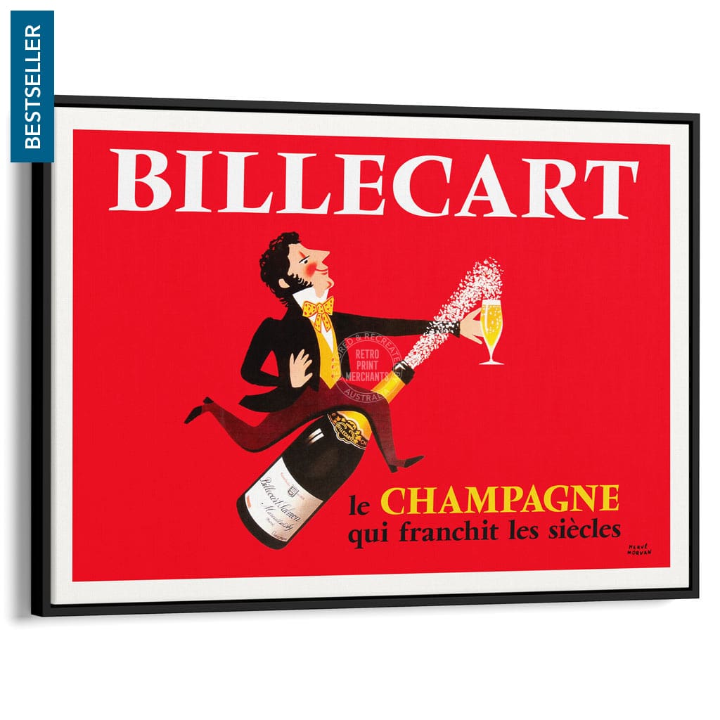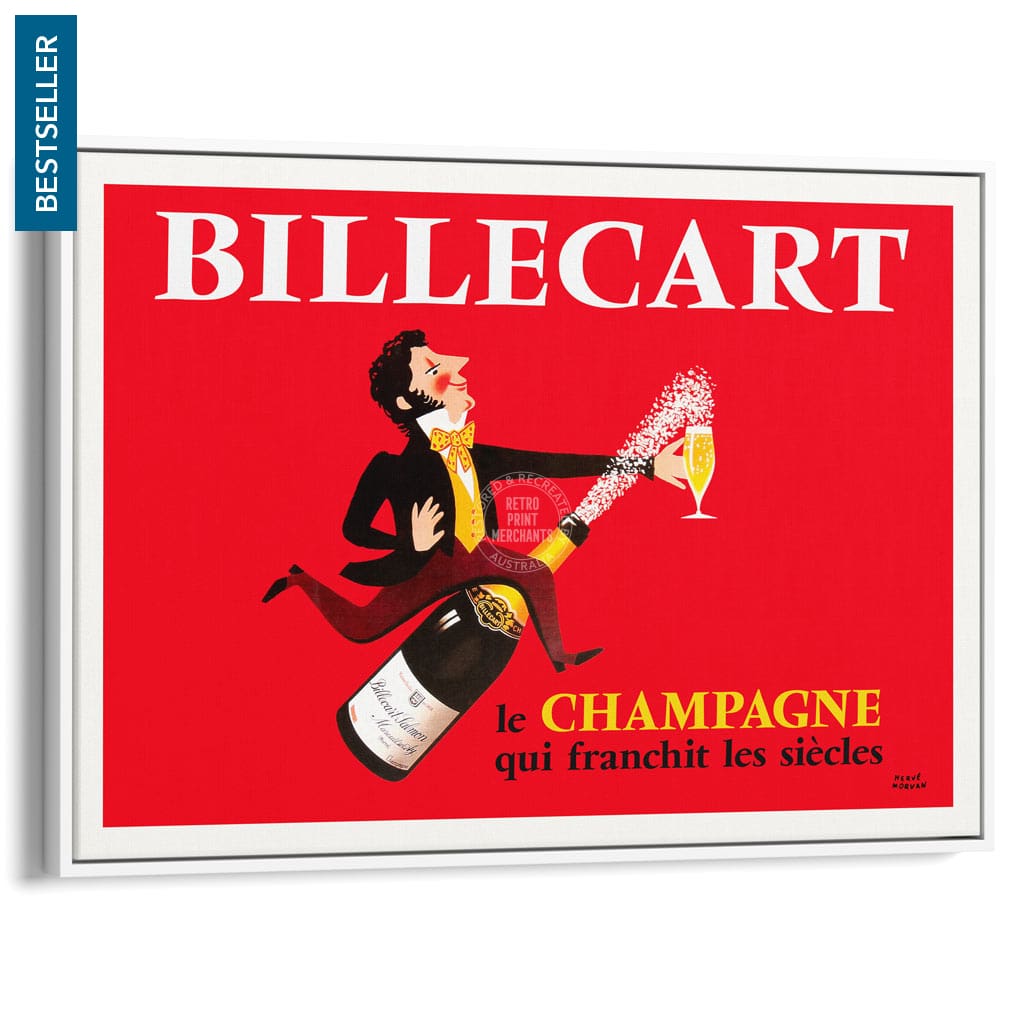 A vintage advertising poster for Billecart-Salmon Champagne by French artist Herve Morvan circa 1959.