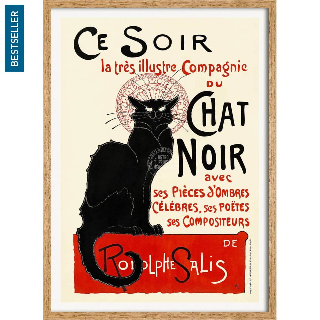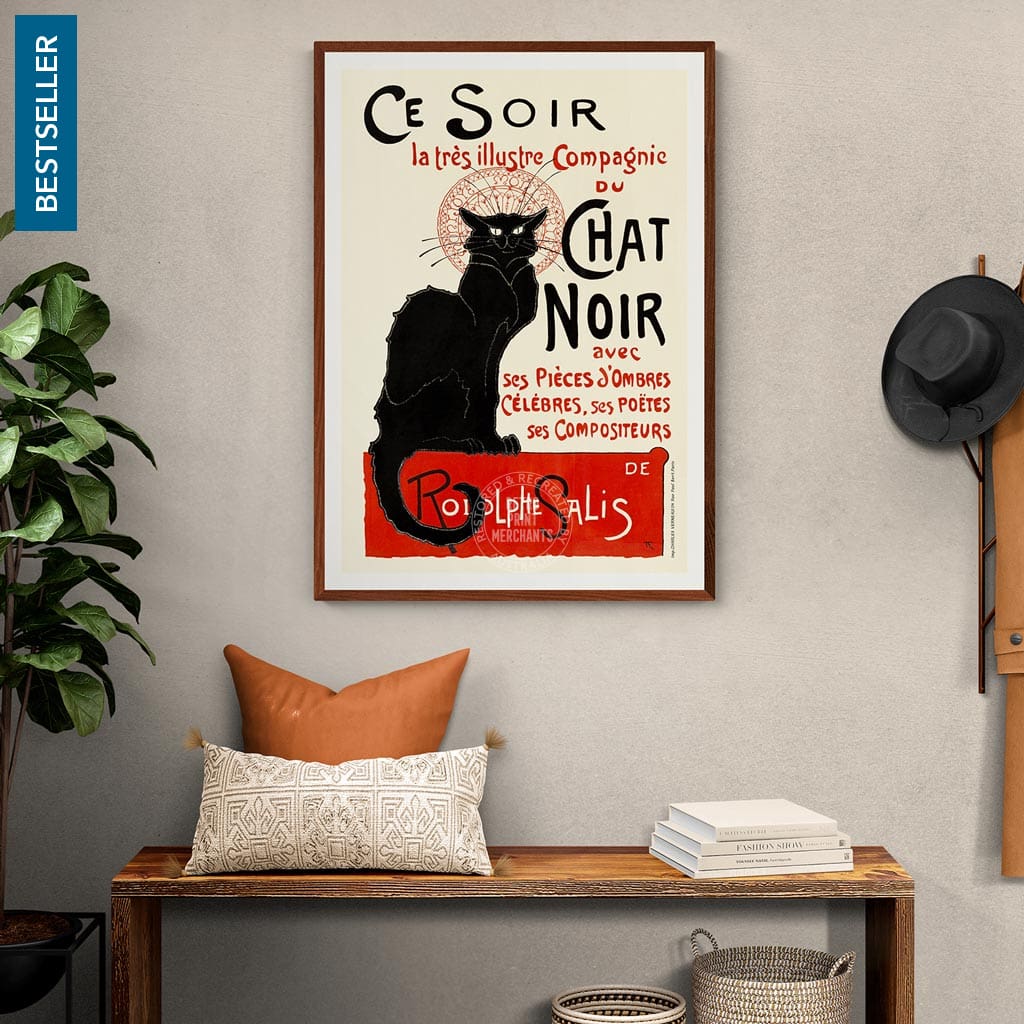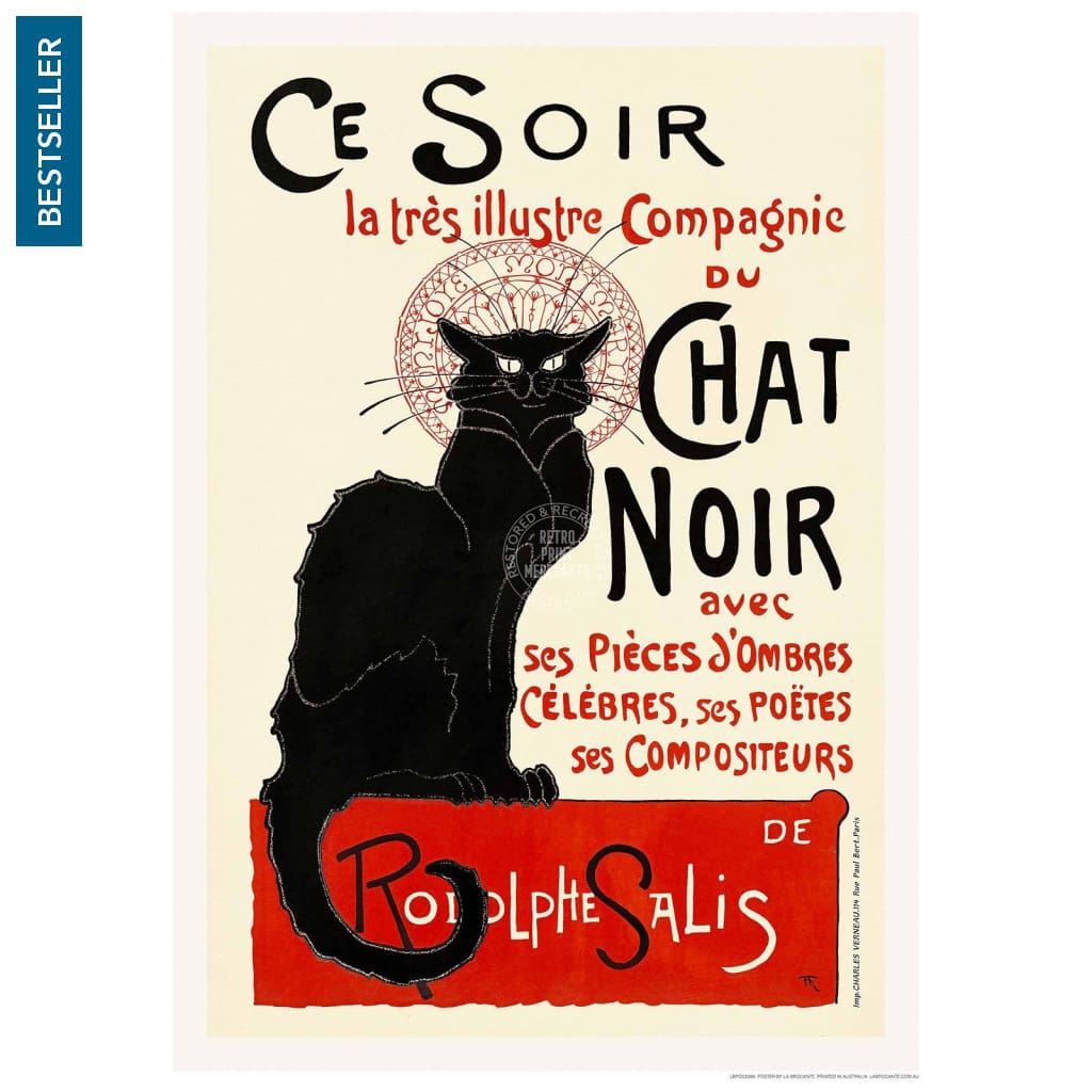 One of several versions of Théophile Steinlen’s iconic vintage poster for the 19th century Le Chat Noir cabaret club in the bohemian Montmartre district of Paris.