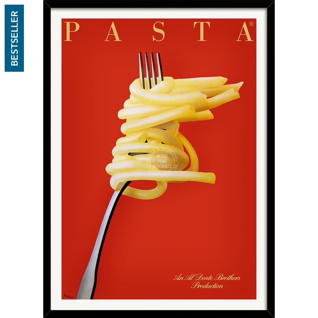 A retro restored pasta poster from the 1980s by French artist Razzia.