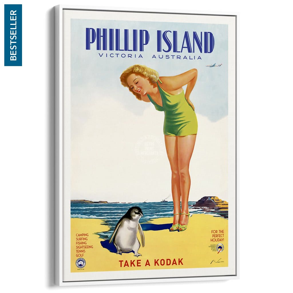 A retro travel poster for Phillip Island, Victoria, Australia, circa 1930s and restored to our usual high standards.