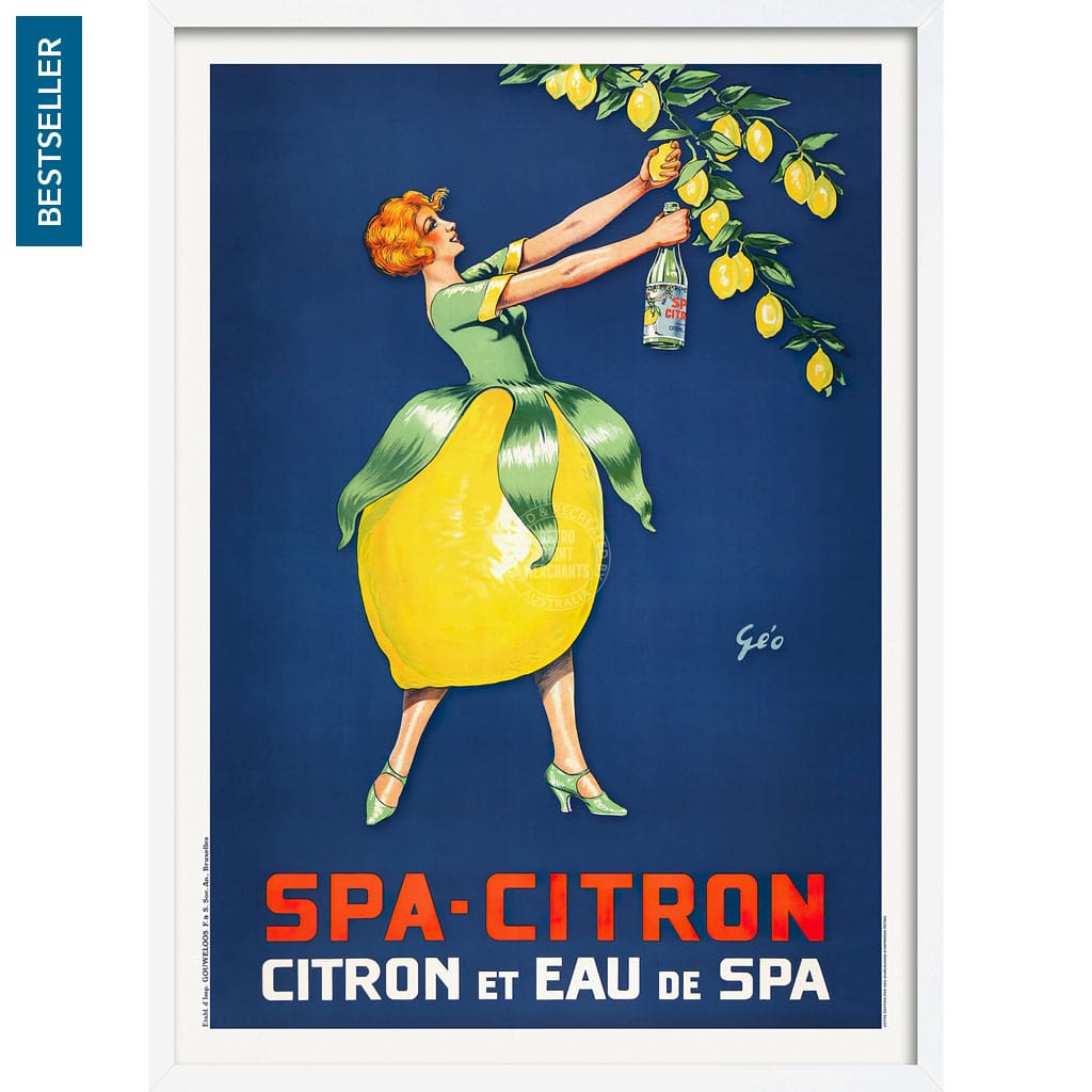 A restored reproduction of a 1930s Belgian-printed poster for a sparkling lemon-flavoured drink, designed by Emile Georges Weiss.