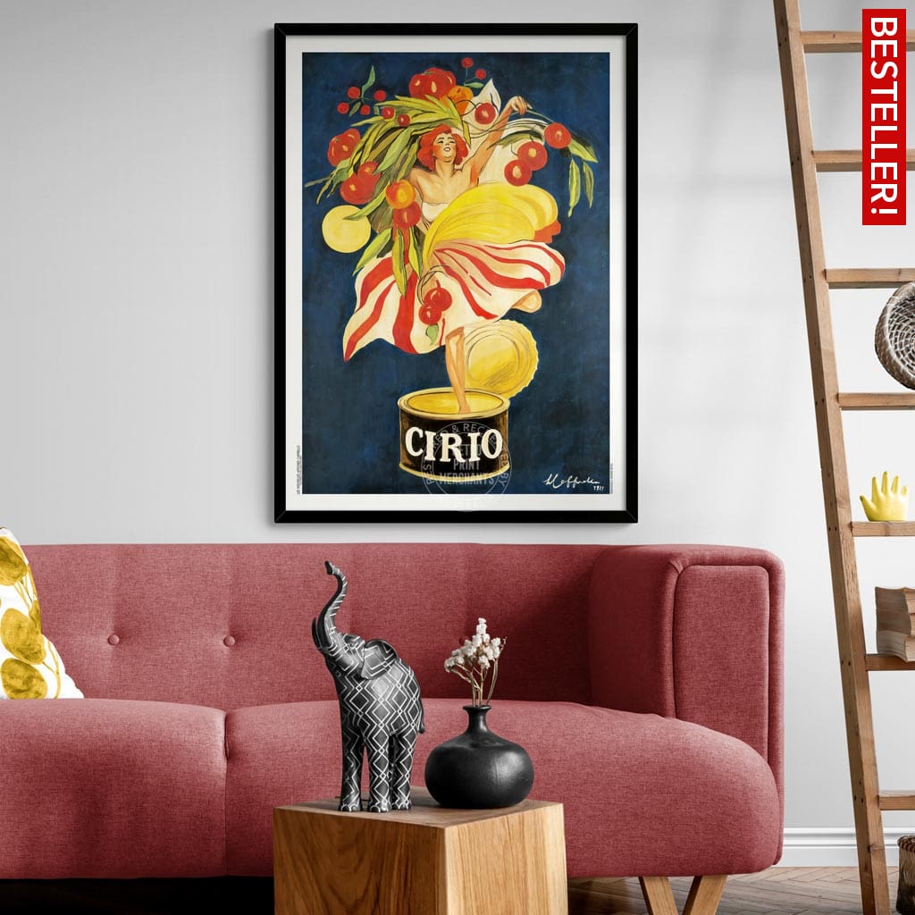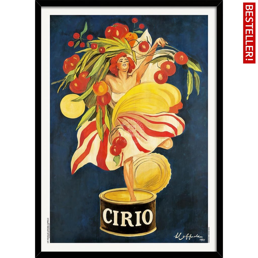 A wonderfully vibrant vintage poster for Cirio tomatoes and other fruits, designed by Leonetto Cappiello in 1921.