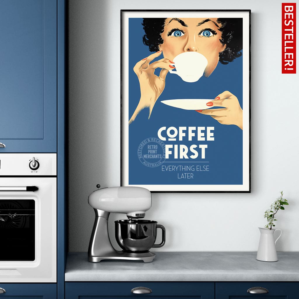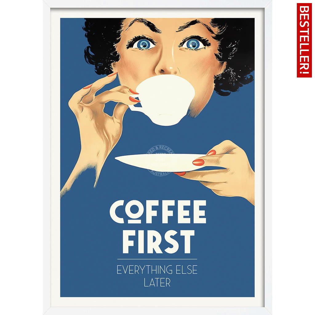 Coffee First Everything Else Later | Worldwide A3 297 X 420Mm 11.7 16.5 Inches / Canvas Floating