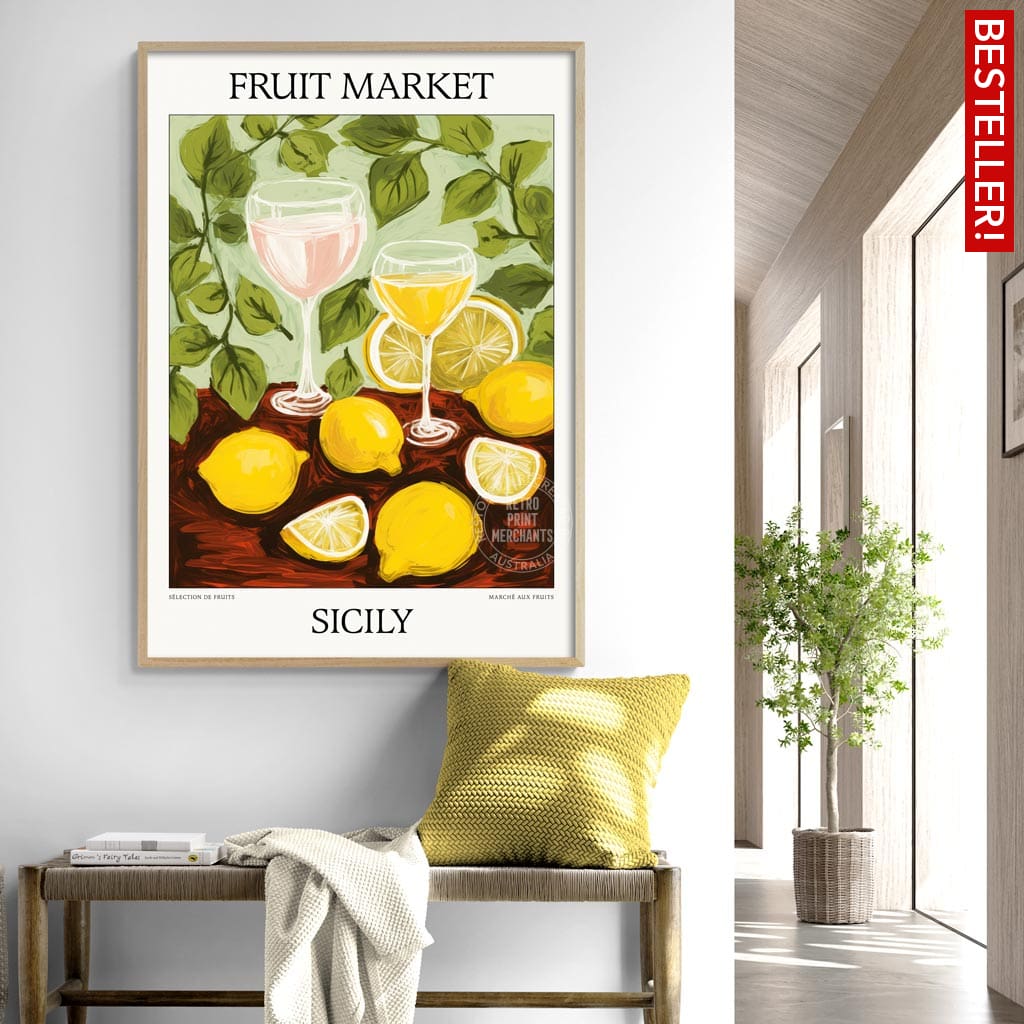 Personalise this FRUIT MARKET print by adding your suburb or city in the Personalisation Details field above and we'll replace SICILY with your details.