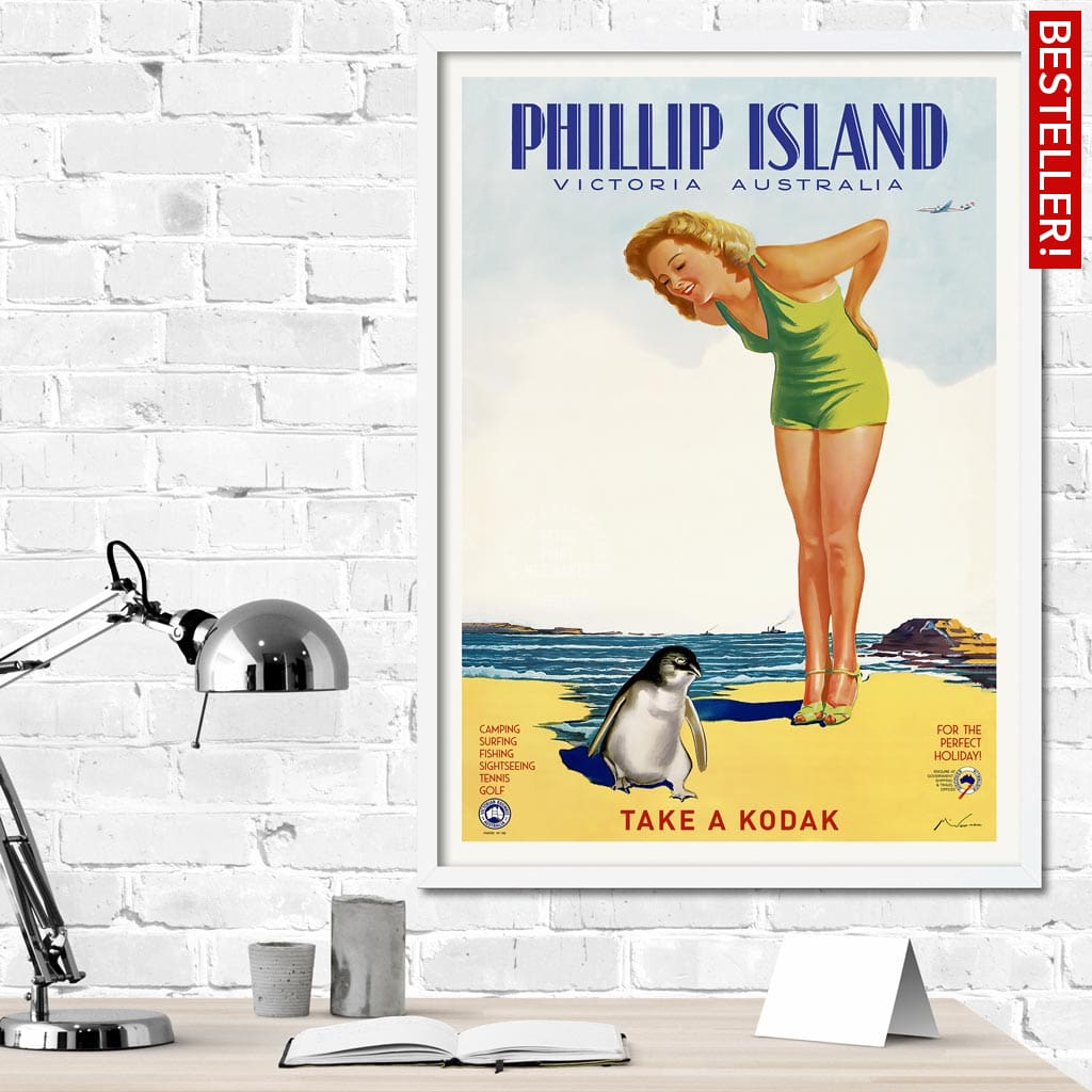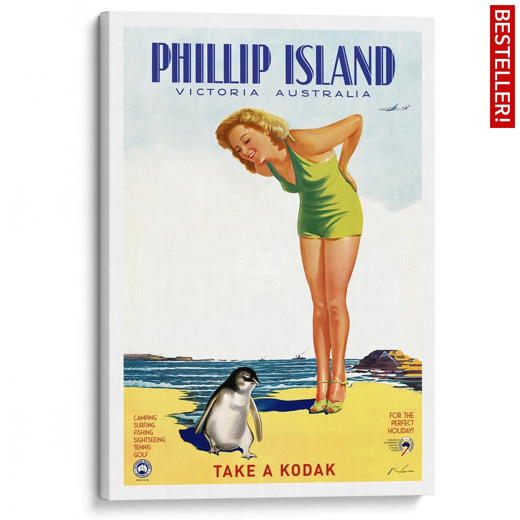 A retro travel poster for Phillip Island, Victoria, Australia, circa 1930s and restored to our usual high standards.
