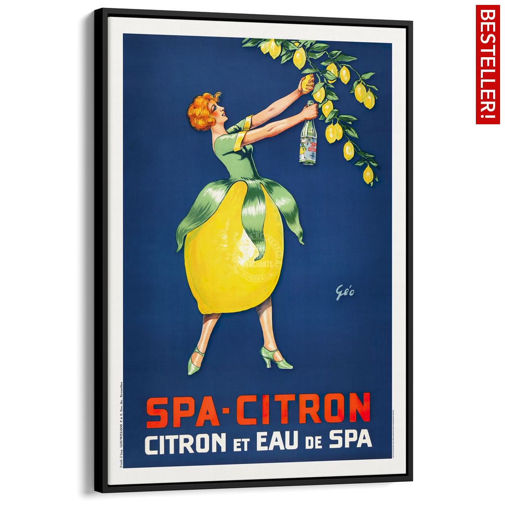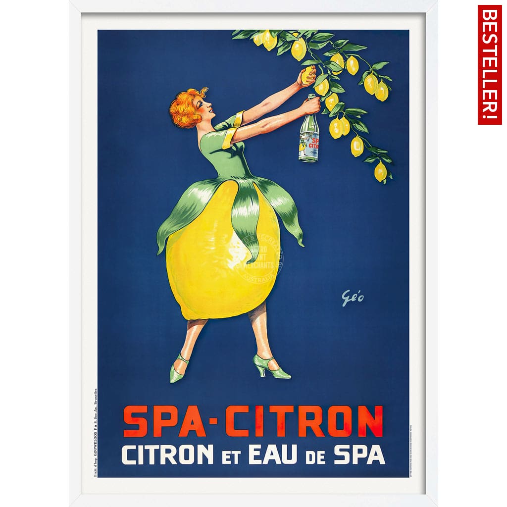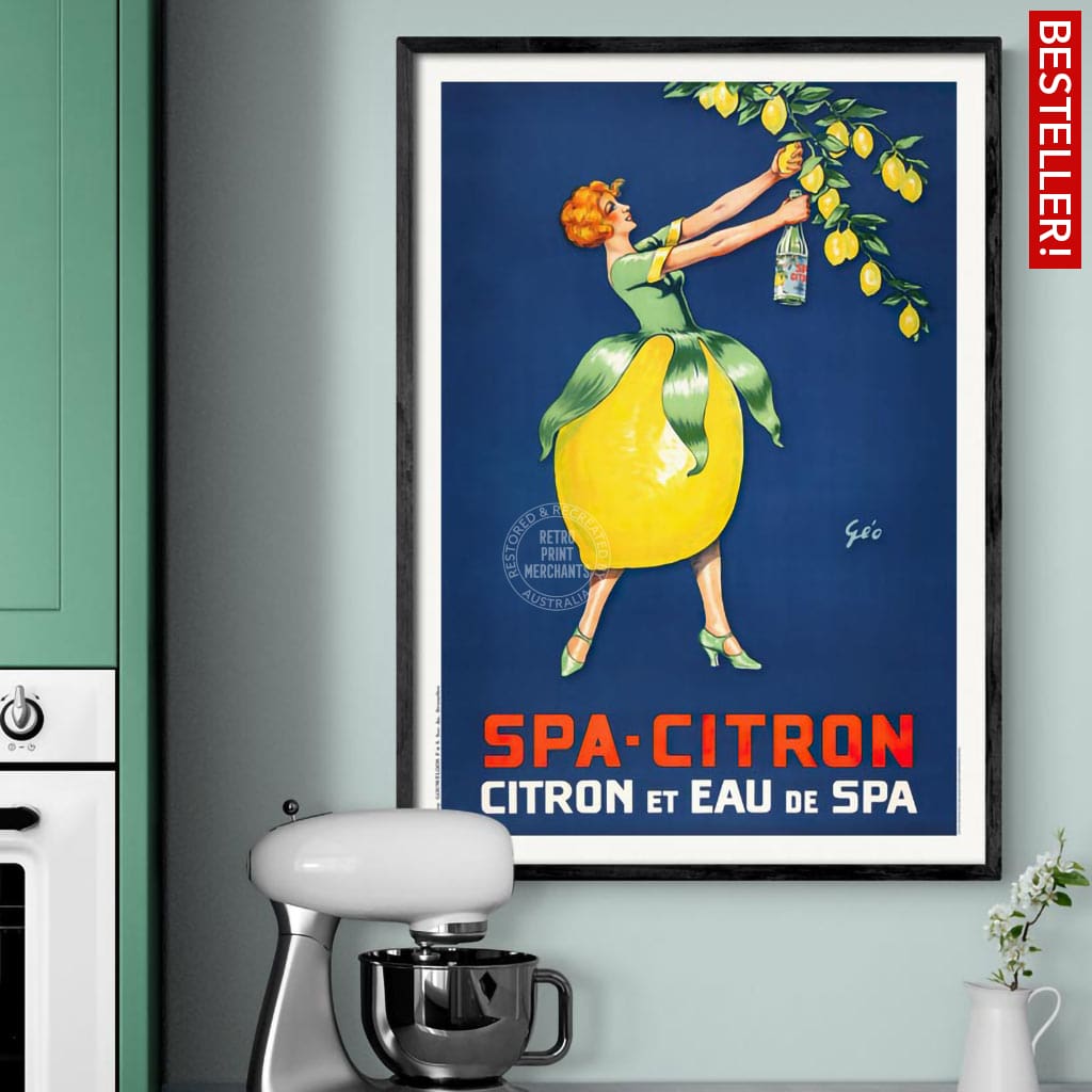 A restored reproduction of a 1930s Belgian-printed poster for a sparkling lemon-flavoured drink, designed by Emile Georges Weiss.