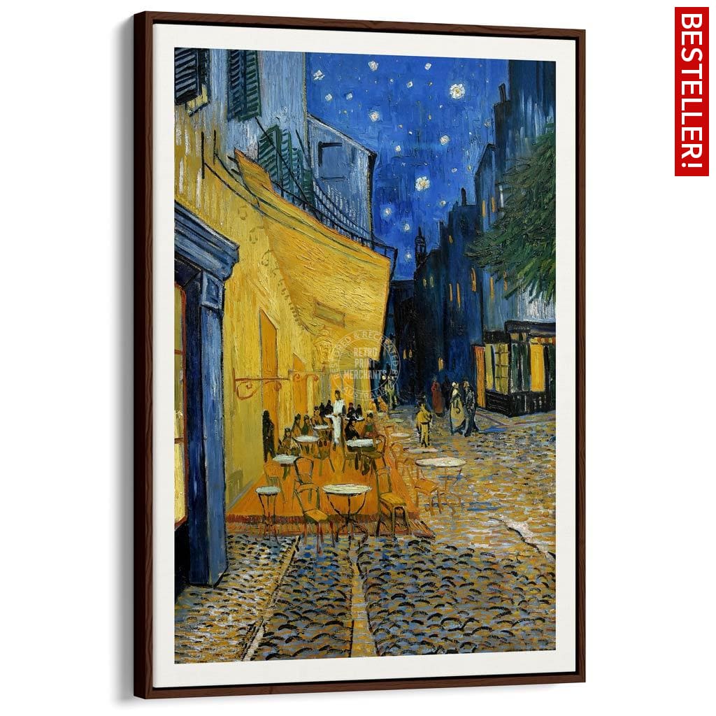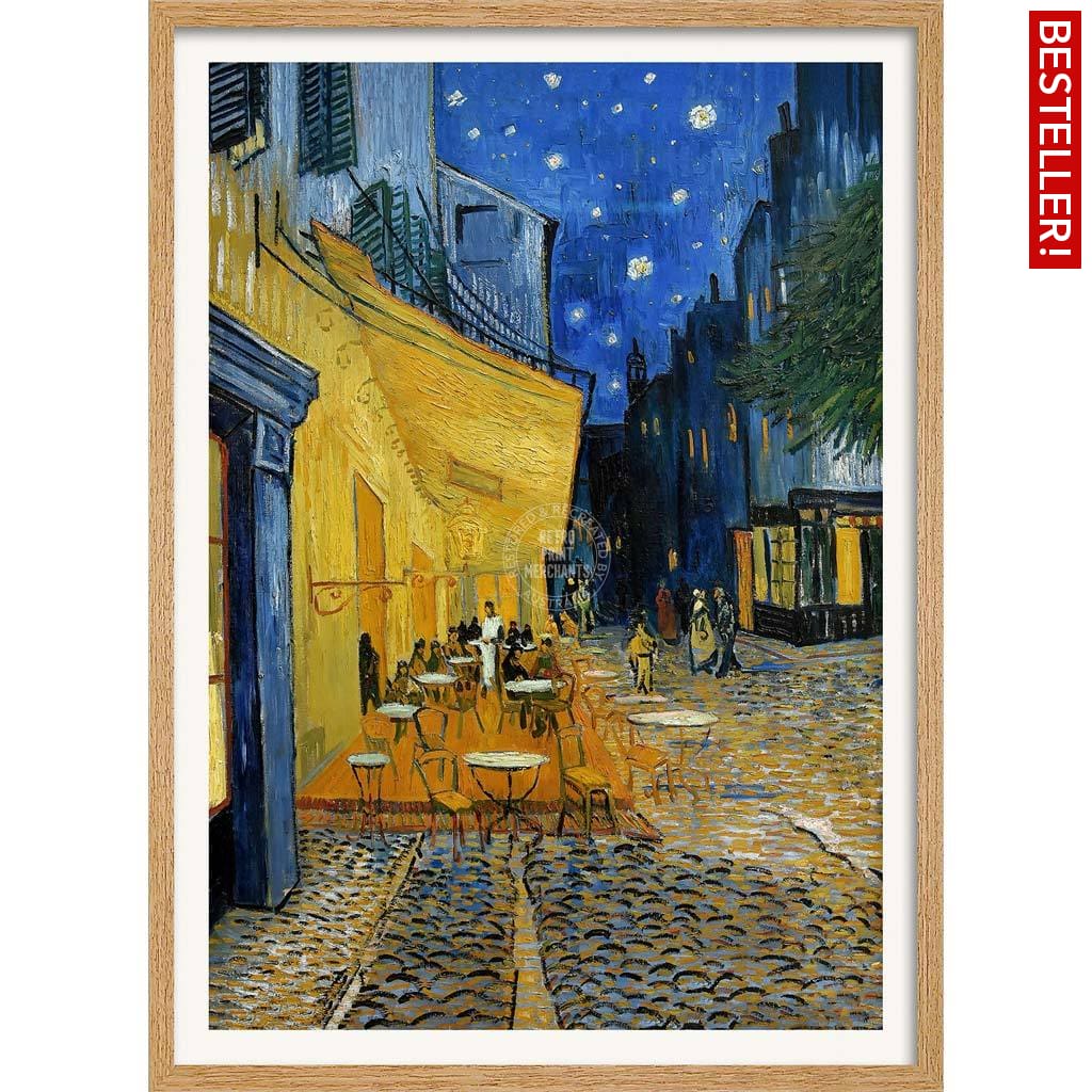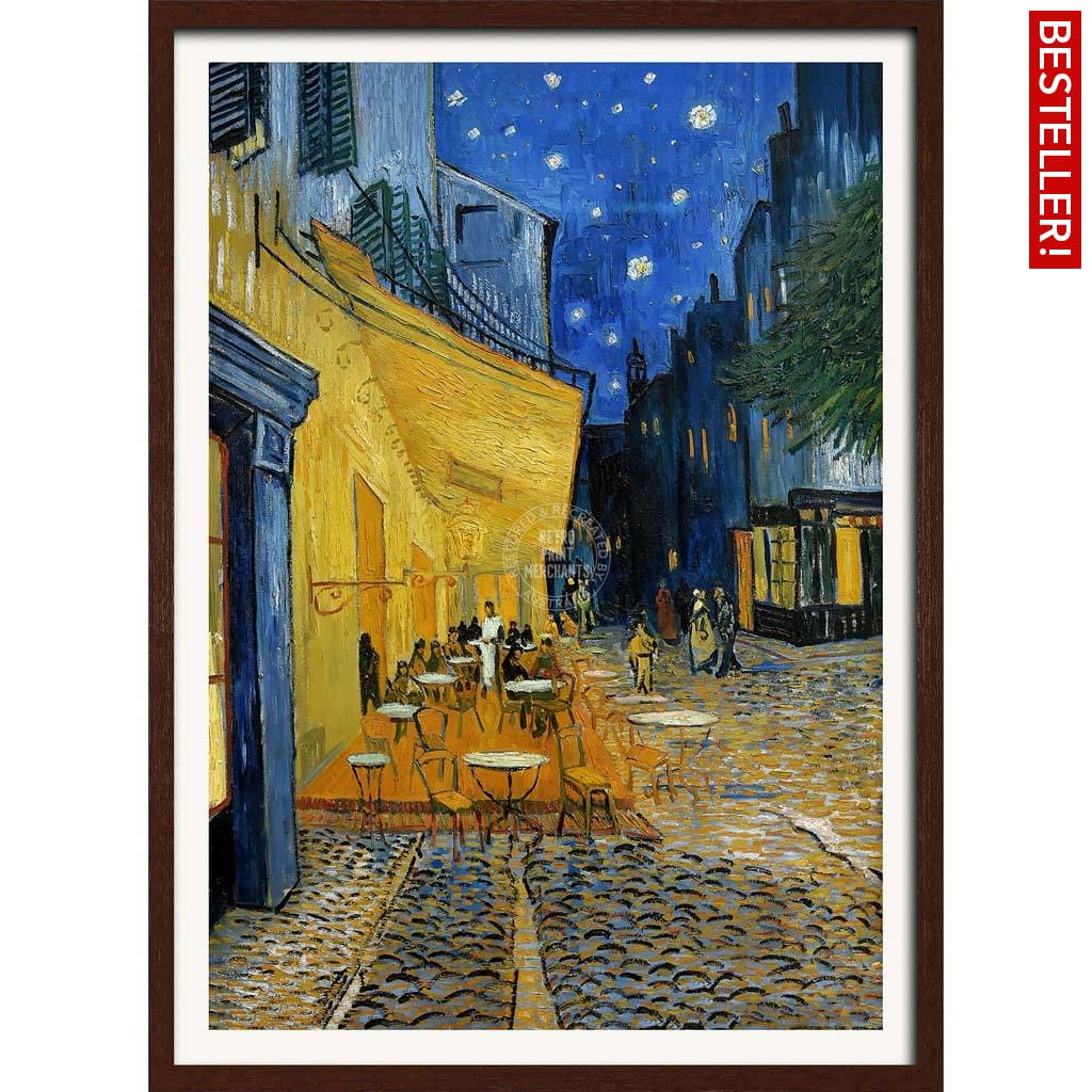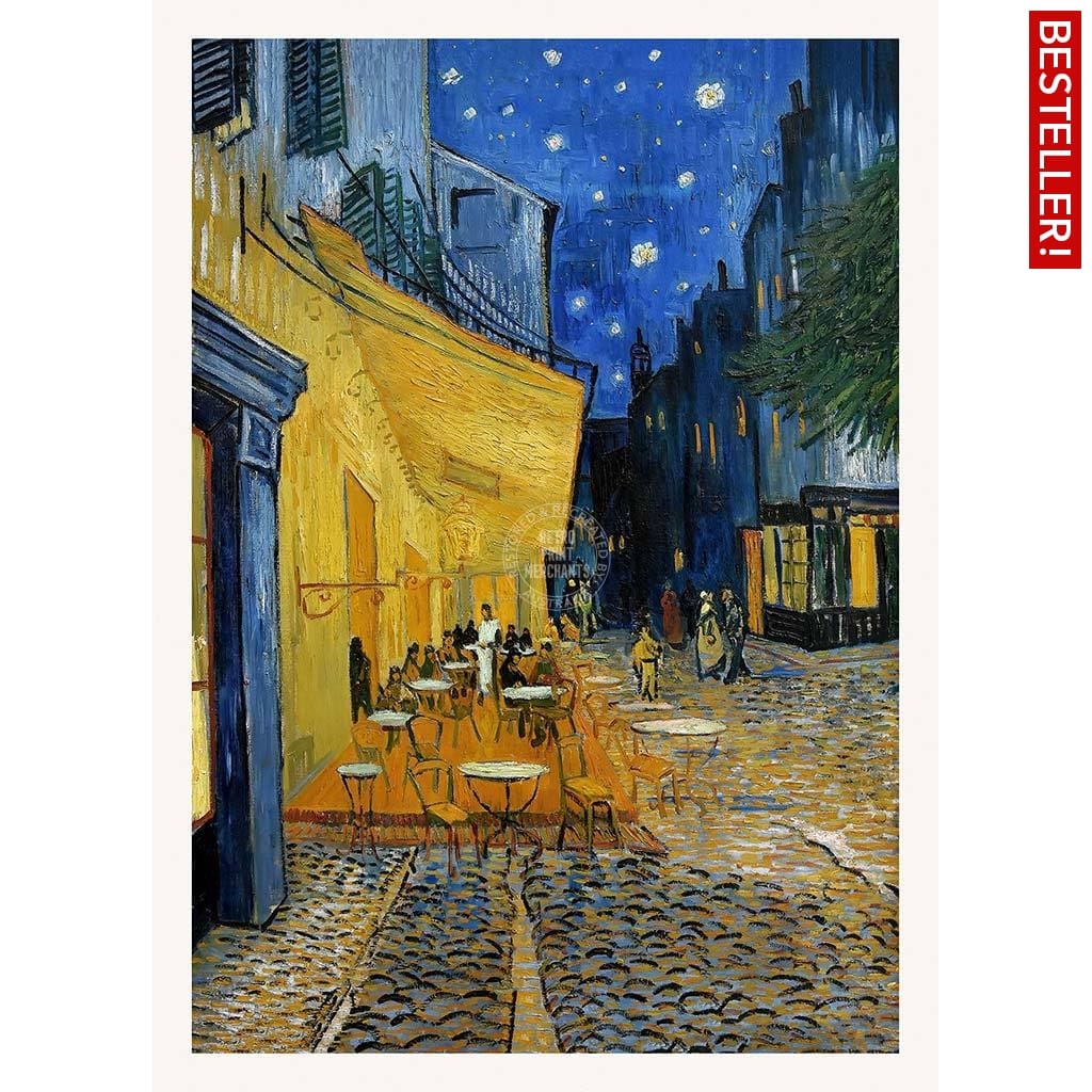Dutch-born Vincent van Gogh (1853-1890) painted Cafe Terrace At Night on location in Arles, Provence, in 1888. Van Gogh’s iconic star-filled sky appears for the first time in this painting and was used to great effect not long afterwards in his Starry Night Over The Rhone and Starry Night (both also painted in Arles).