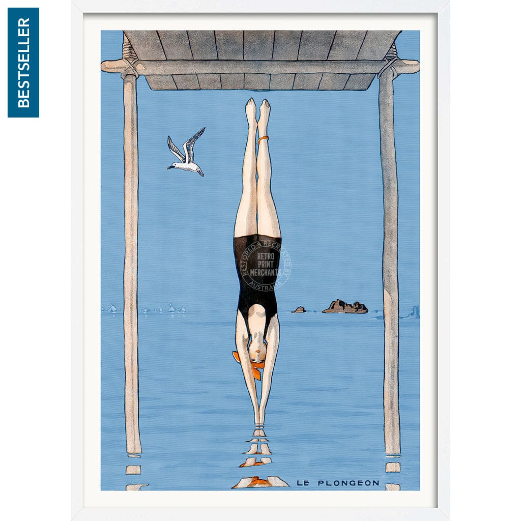 This restored version of Le Plongeon now offers a window into that early 20th century world - a blend of refinement, optimism and charm from post-WWI Paris. Perfect for lovers of vintage illustration, French style and summer culture, it’s a piece that feels timeless, effortlessly chic, beautifully composed, and steeped in the spirit of La Vie Parisienne’s golden age.