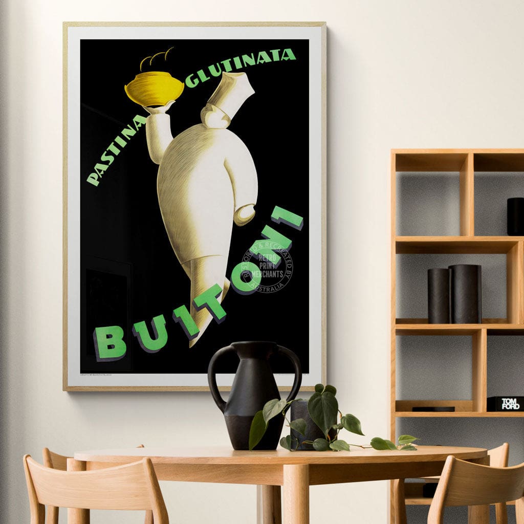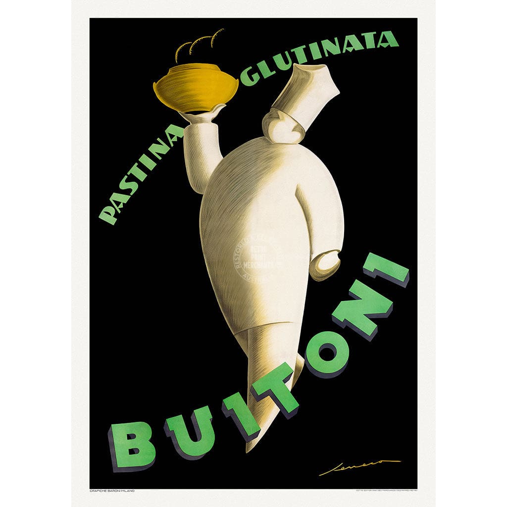A restored poster from 1923 for Buitoni pasta designed by Italian poster artist Frederico Seneca.