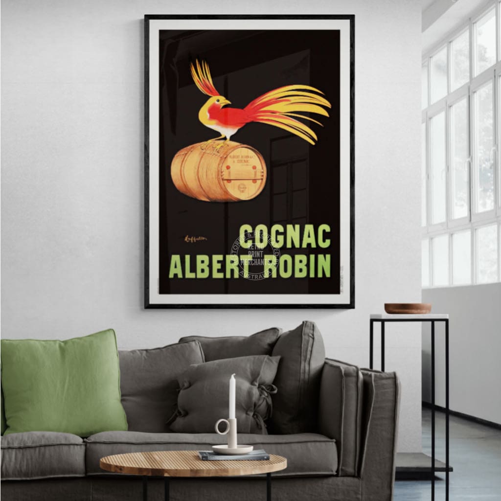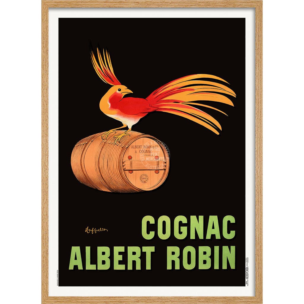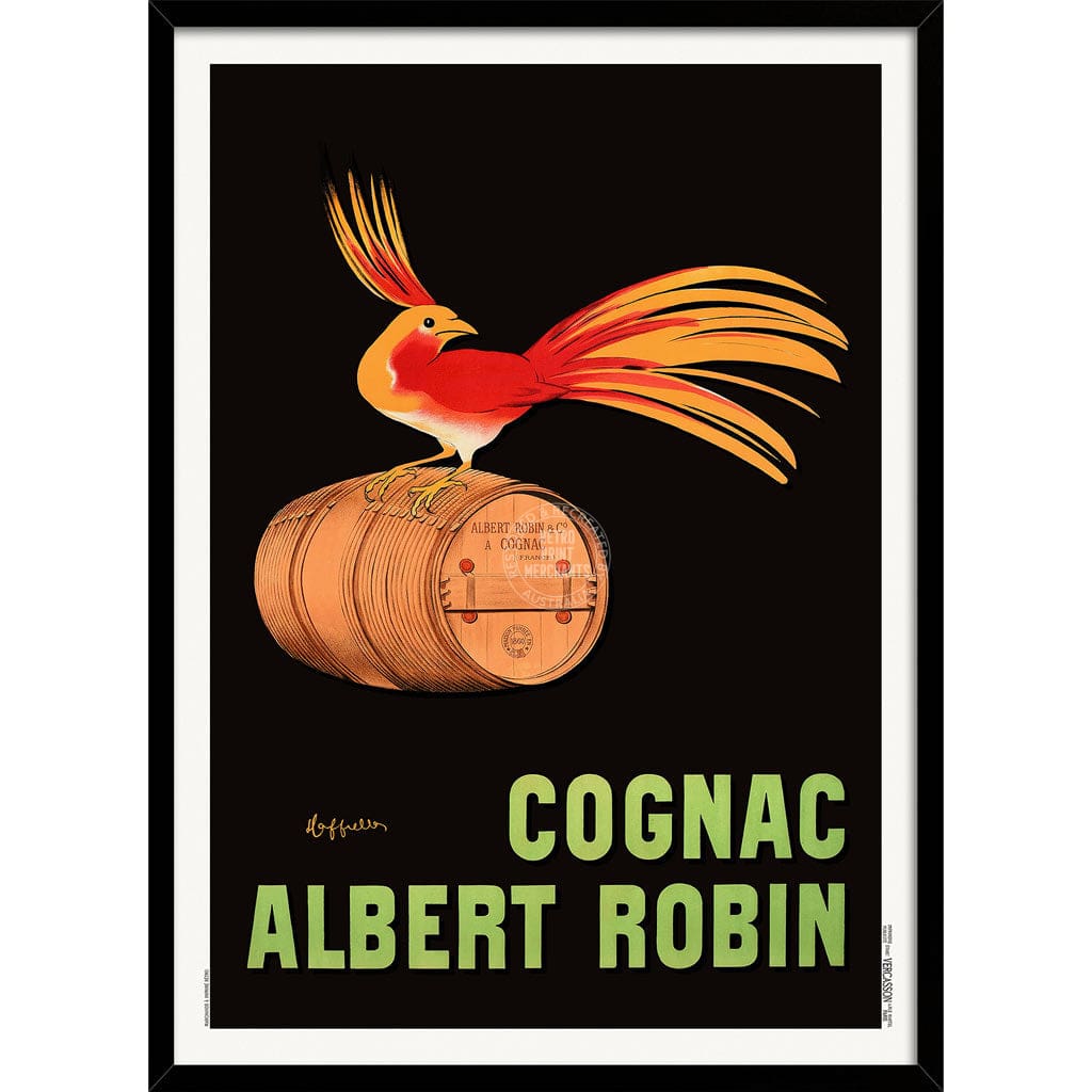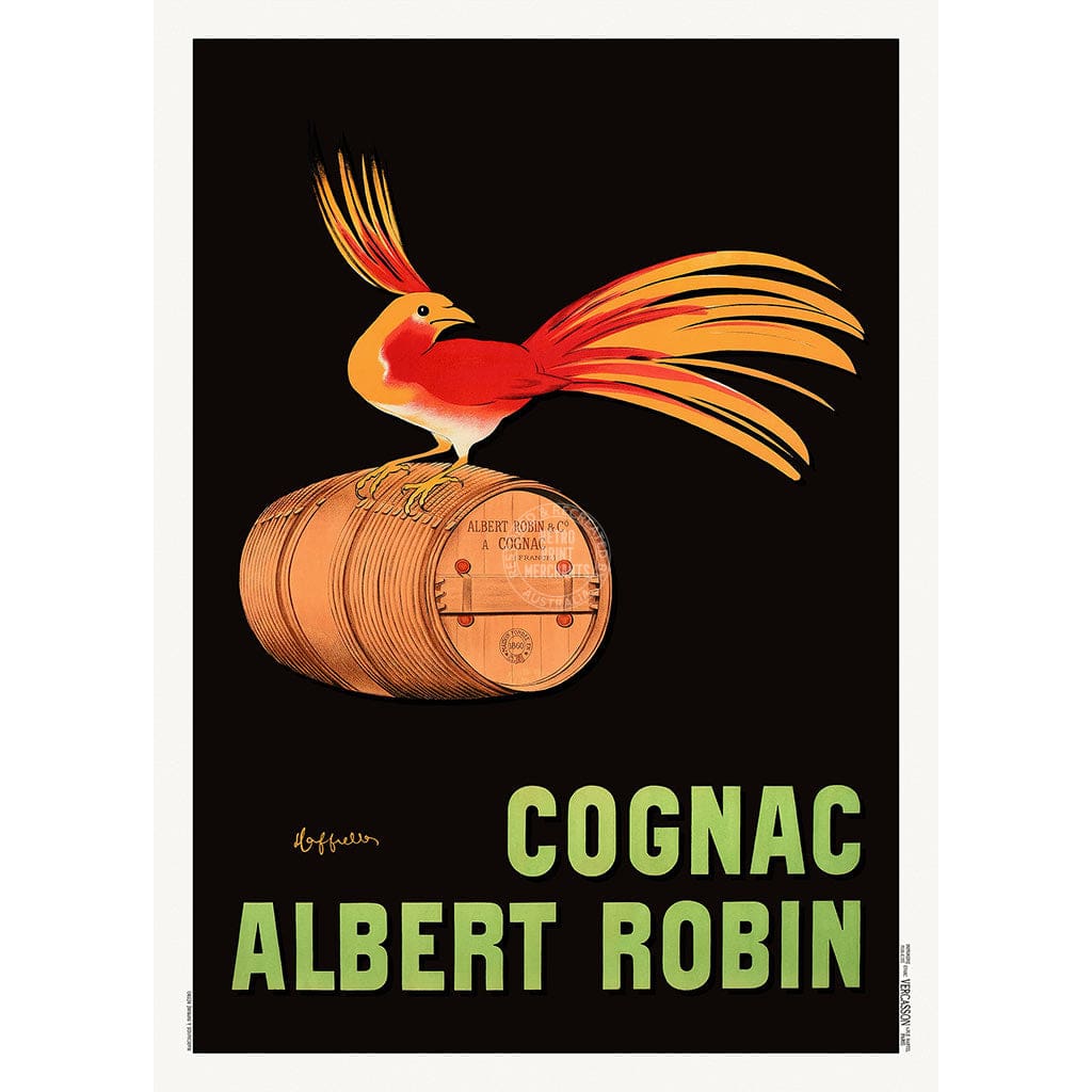 The Cognac Albert Robin firm began in 1860 and has been a family business ever since. It comes as no surprise that Cappiello chose a fiery red and yellow robin as the eye-catching centrepiece of this design.