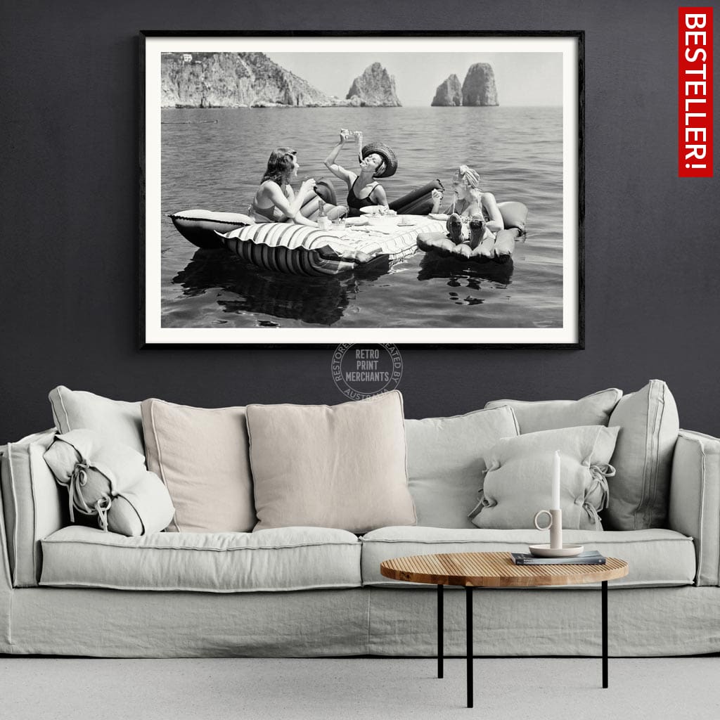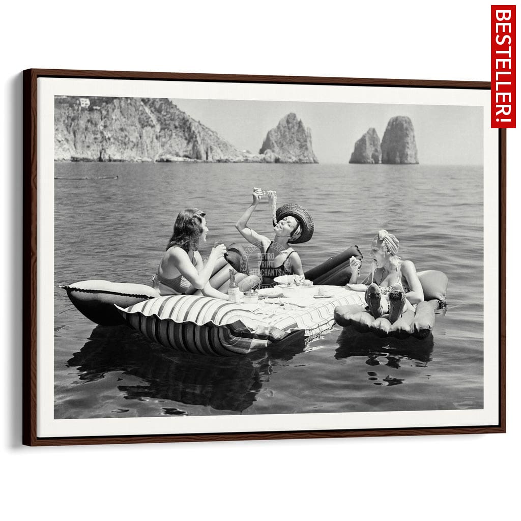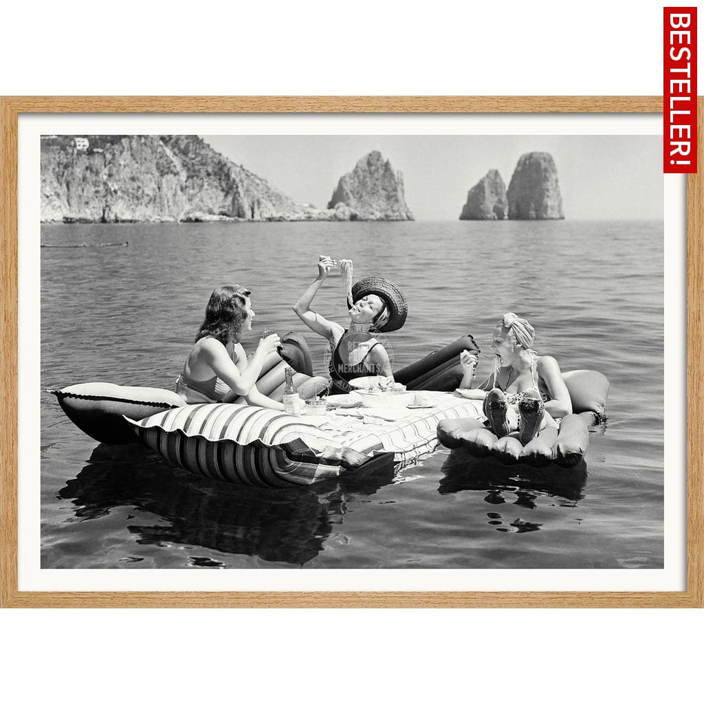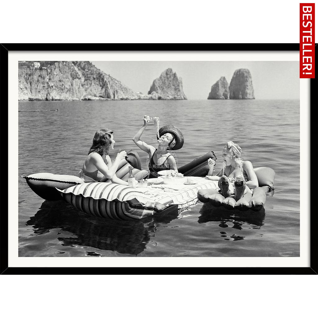 The relaxed pace of life on the Isle of Capri, Italy! These holidaying socialites were snapped enjoying an aquatic luncheon served to them by swimming waiters in the calm and warm Mediterranean waters.